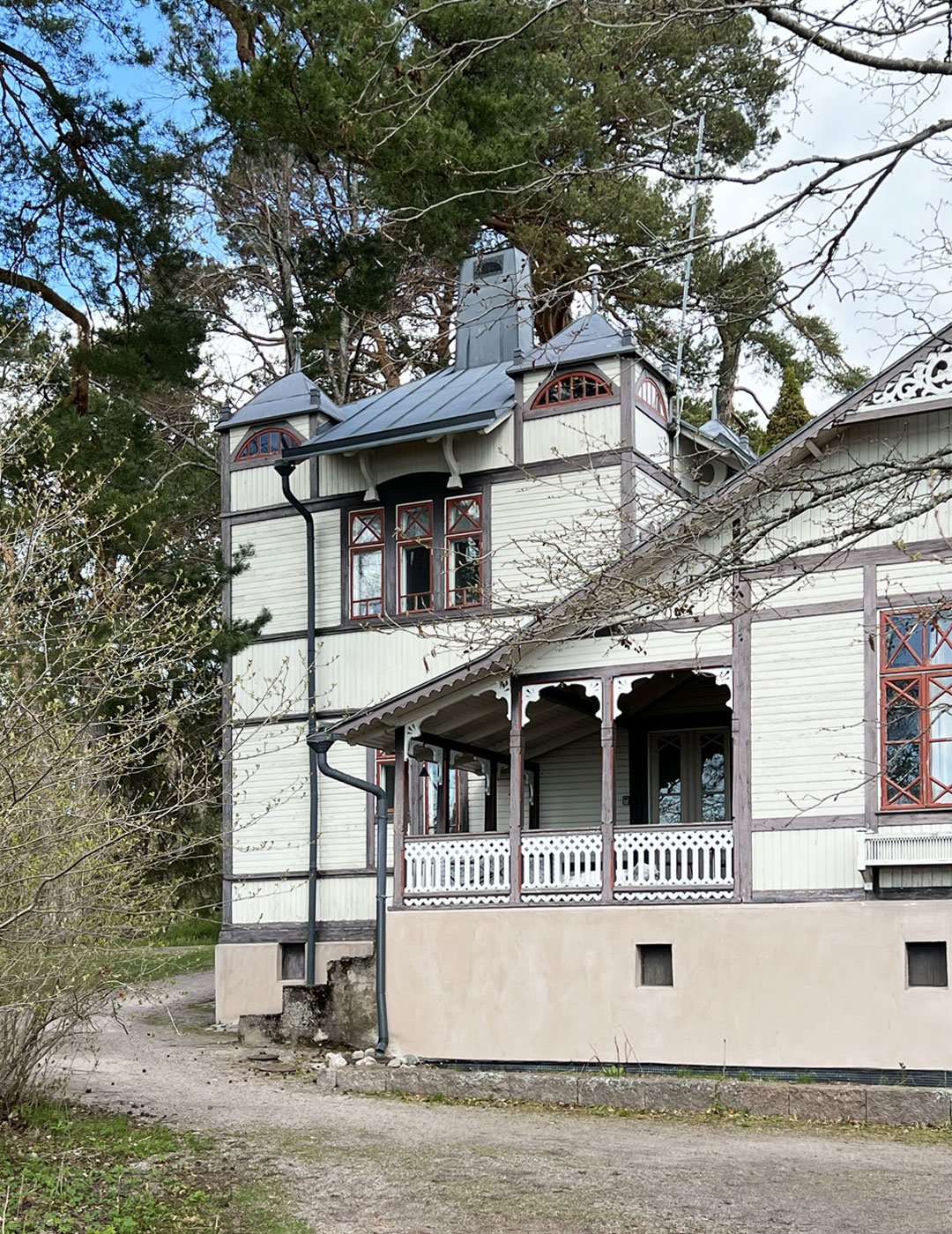 Villa Rulludd was built in several stages, combining different construction methods and architectural styles. It was interesting to learn that the original version of the villa was quite modest; only later were the second floor, a large veranda, a tower, and many other additions built – some of which remain, and others no longer exist.